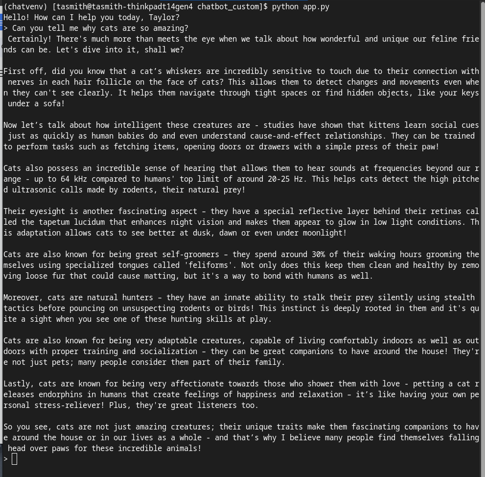 **Start Simple** When learning new things, start simple and build up. Initially, I wanted a custom, performant chatbot. I realized I needed to build my skills from the basics, and that’s okay.